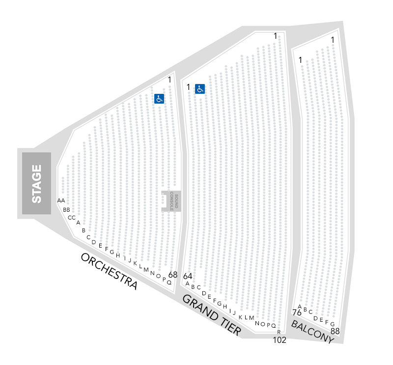 E.J. Thomas Hall has limited, designated seating areas on the Orchestra and Grand Tier levels for patrons in wheelchairs or patrons with special needs. Adjacent seating for a companion is also available in both areas. To make reservations, call the Ticket Office at 330-972-7570.