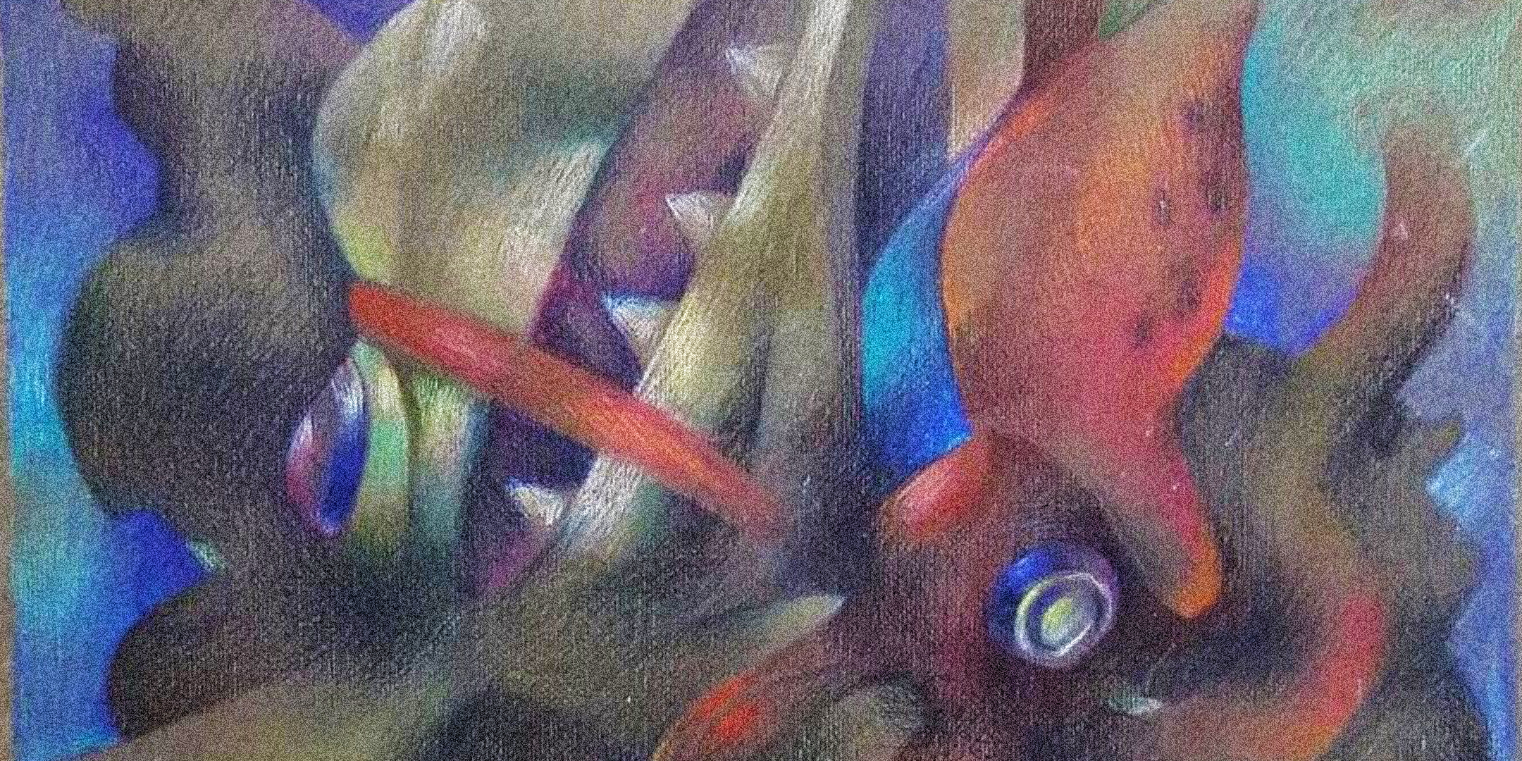 Charles Reed was born in Cleveland, OH in the year 2000. Growing up in the Midwest, he spent his adolescence absorbing comic books, surrealist films, and psychedelic music. He spends much of his time drawing and hanging out in the woods. Reed takes inspiration from a variety of sources including marine biology, cartoons, and oceanography. His work explores worldbuilding and the relationship between what is seen and what is unseen. He also has an interest in observing natural and artificial light which influence his paintings. His work includes oil paints, acrylic, collage, colored pencil, charcoal, and ballpoint pen drawings.