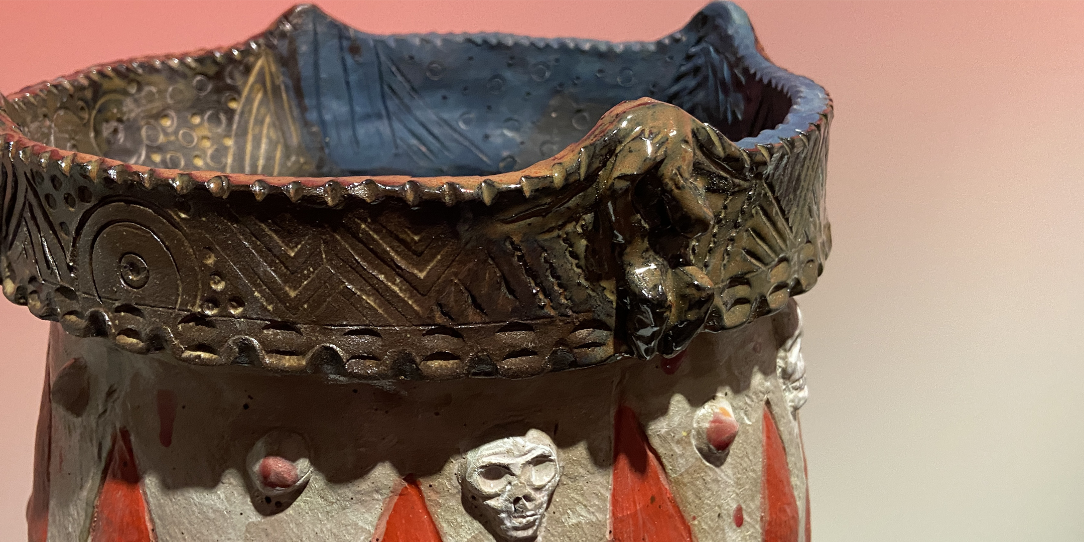 Peter B. Jones is a renowned potter and sculptor who resides on the Allegany Territory of the Seneca Nation of Indians. He studied under Hopi artist Otellie Loloma while attending the Institute of American Indian Art in New Mexico. His pottery, some of which is derived from traditional Iroquois pit firing, hand-built coiling and slab construction, is admired and collected by community members, Native American art collectors, and museums across the country and internationally, including the National Museum of the American Indian and the Metropolitan Museum of Art, and the Institute of American Indian Arts. He has been instrumental in reviving historical Hodinöhsö:ni’ (Haudenosaunee) styles and techniques of pottery making, while also developing a body of figurative pottery that highlights and reflects the issues that have impacted the Haudenosaunee communities, past and present, such as the impact of colonialism, and indigenous dispossession, oppression, genocide, resistance, and resilience.
